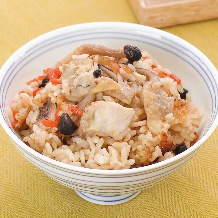 炊きあがりに広がるきのこの香りと、鶏肉の旨味が食欲をそそります。