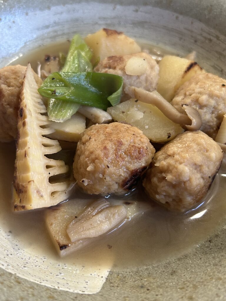 春には、堀りたての竹の子をふんだんに使った「竹の子ごはん」、「たけのこの煮物」。