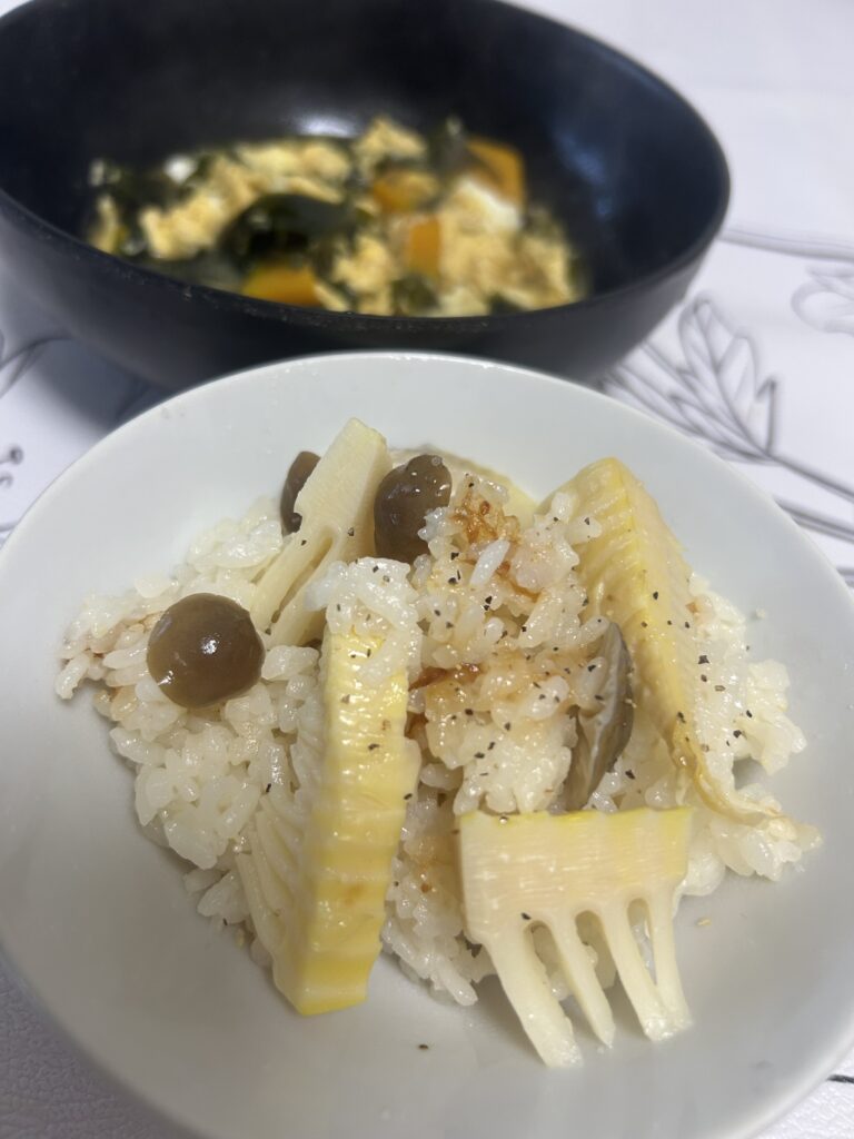 旬の香りが広がる炊き込みご飯を口にした利用者さんからは、「春の味がするね!」と笑顔がこぼれました。